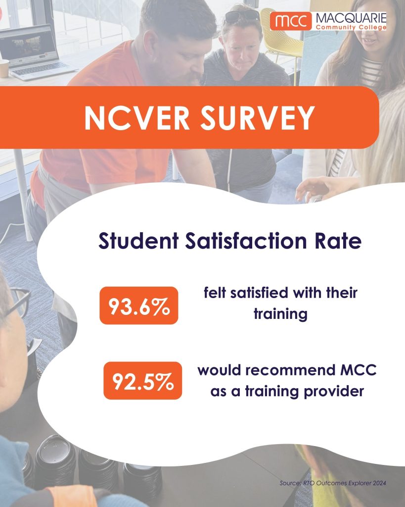 Furthermore, MCC Students consistently report positive learning experiences at Macquarie Community College.